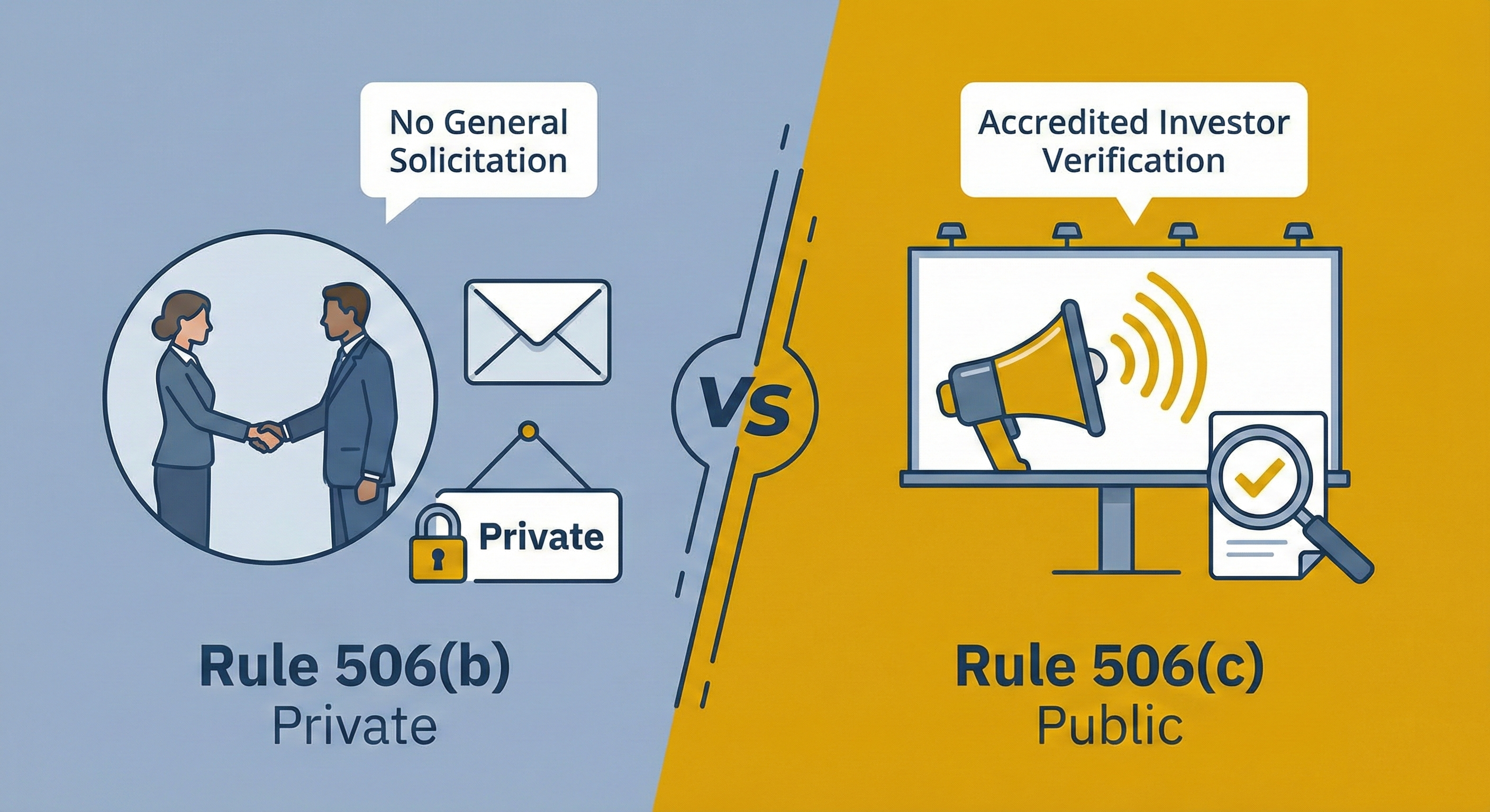 Understanding the key differences between Rule 506(b) and Rule 506(c) is crucial for fund managers. Learn which exemption best fits your strategy.